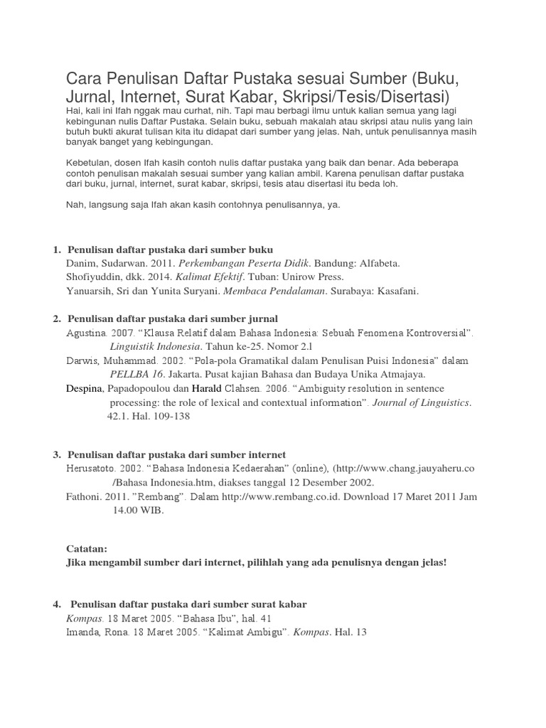 Contoh Daftar Pustaka Buku Skripsi Internet Jurnal Surat Kabar