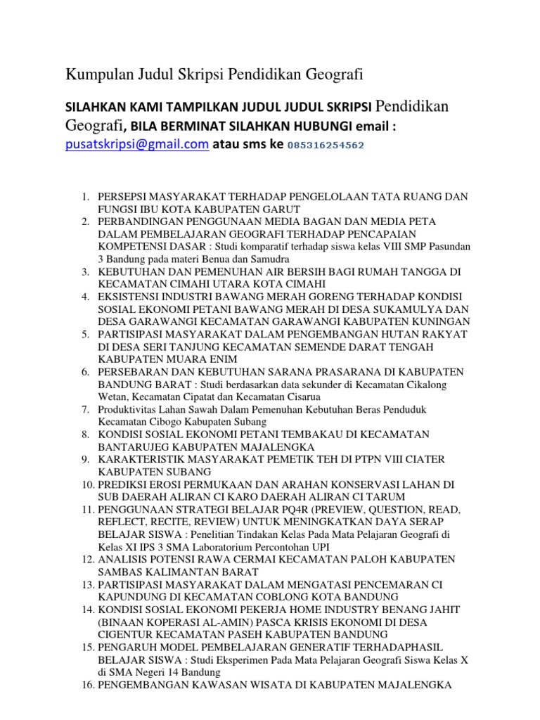 Skripsi Pendidikan Geografi Gratis Kumpulan Contoh Judul Skripsi
