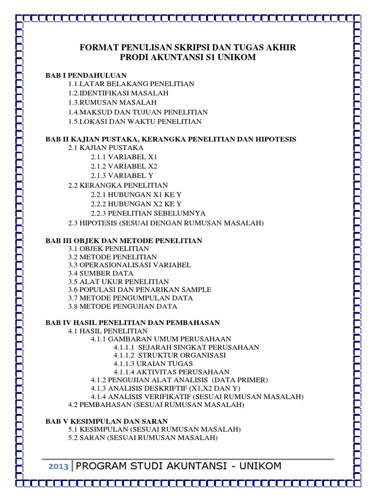Format Penulisan Skripsi Dan Tugas Akhir Prodi Akuntansi Unikom
