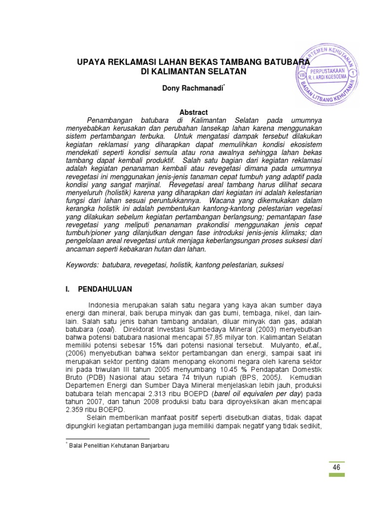 Pdf Reklamasi Dan Pengelolaan Lahan Bekas Tambang Issi Iskandar