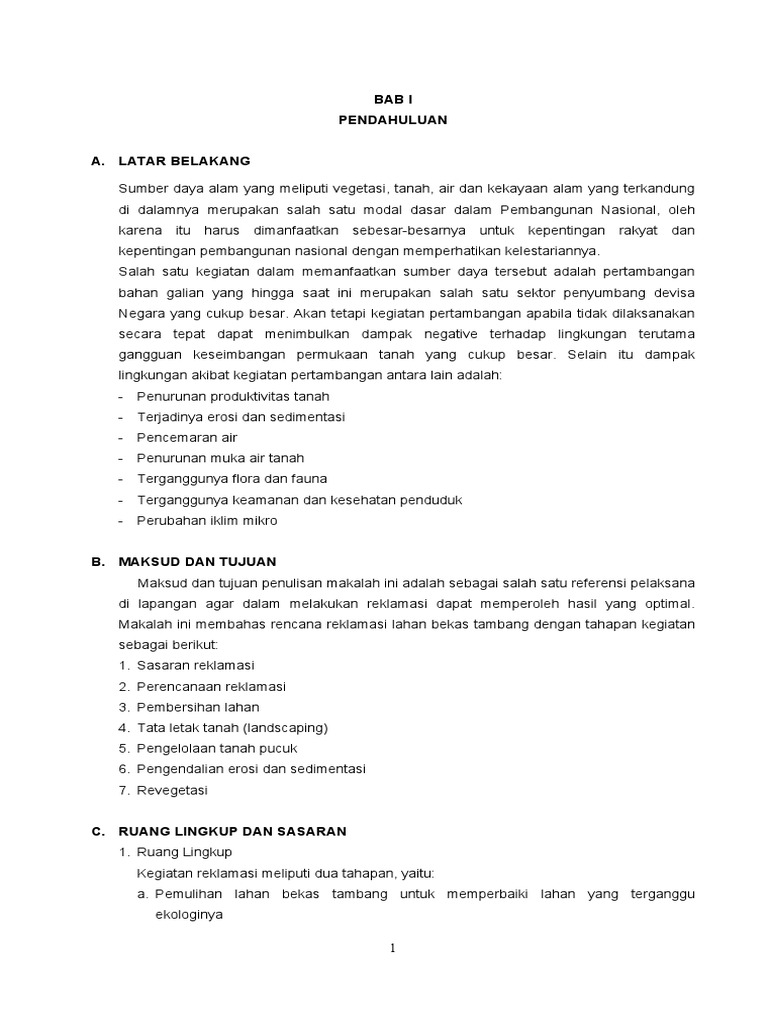 Reklamasi lahan bekas tambang batubara di bengkulu dengan contoh penelitian pdm. Reklamasi lahan bekas tambang emas bab i pendahuluan. Contoh proposal reklamasi tambang unknown ilmu tambang reklamasi.